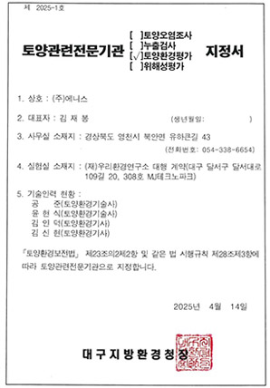 토양환경평가 지정서